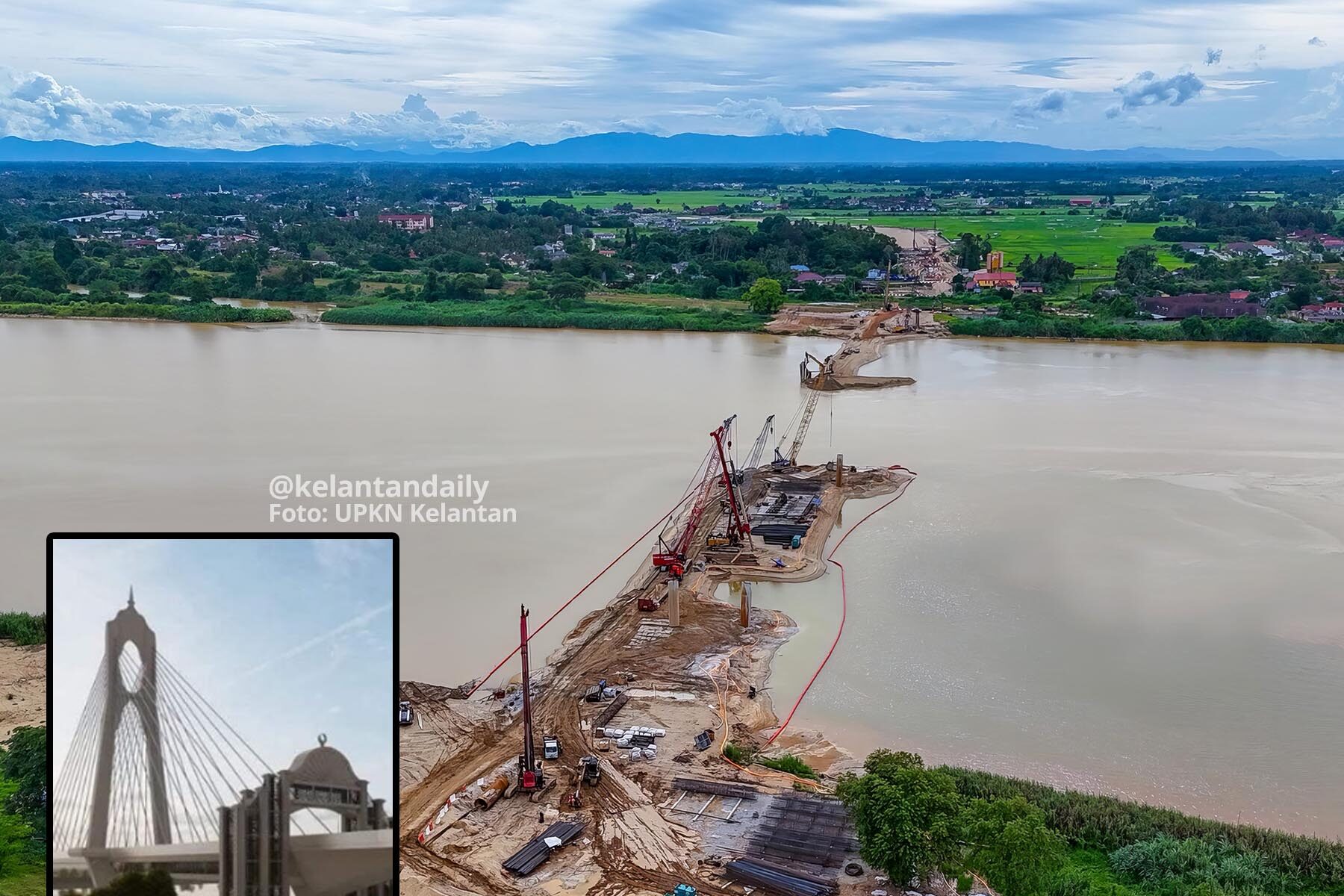 KOTA BHARU – Pembinaan Jambatan Palekbang–Kota Bharu yang dijangka menjadi mercu tanda baharu negeri ini kini menunjukkan perkembangan positif dengan kerja-kerja pembinaan berjalan rancak.