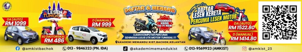 Untuk maklumat lanjut atau pendaftaran, hubungi 013-984 6323 atau layari laman Facebook rasmi Akademi Memandu KIST atau boleh terus scan kod QR yang tertera dibawah. #KelantanDaily