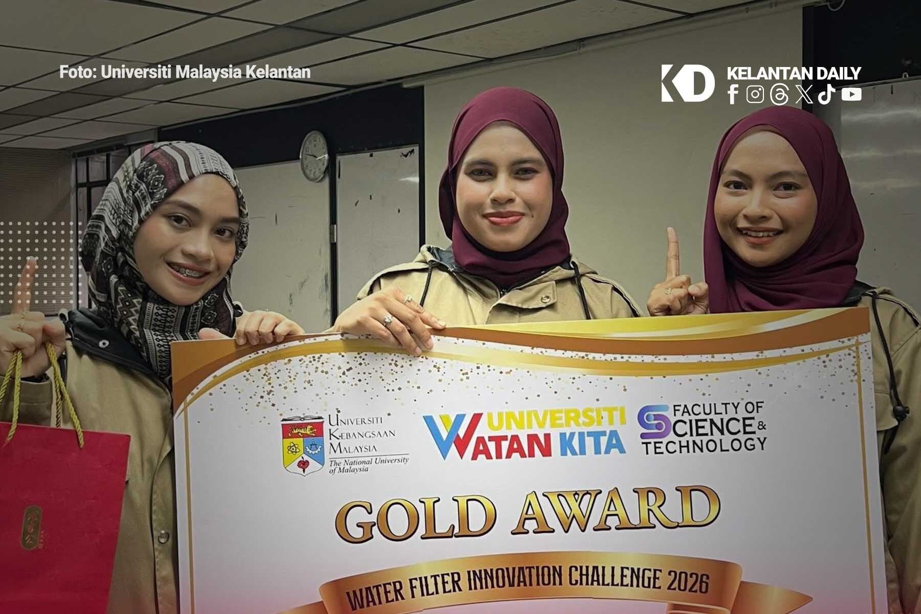Pelajar Fakulti Sains Bumi (FSB), Universiti Malaysia Kelantan (UMK) mencipta kejutan apabila berjaya meraih Anugerah Emas pada Water Filter Innovation Challenge 2026, sempena UKM Geoscience Carnival 2026 yang berlangsung di Universiti Kebangsaan Malaysia (UKM), Bangi, Selangor.