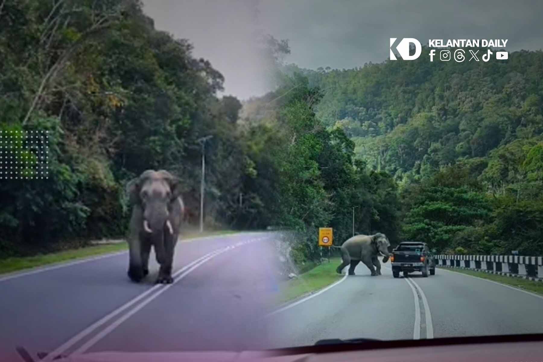 “Banyak kali sudah terserempak dengan gajah bila lalu laluan Timur-Barat, tetapi ini pertama kali betul-betul dekat sangat,” tulisnya di ruangan kapsyen.