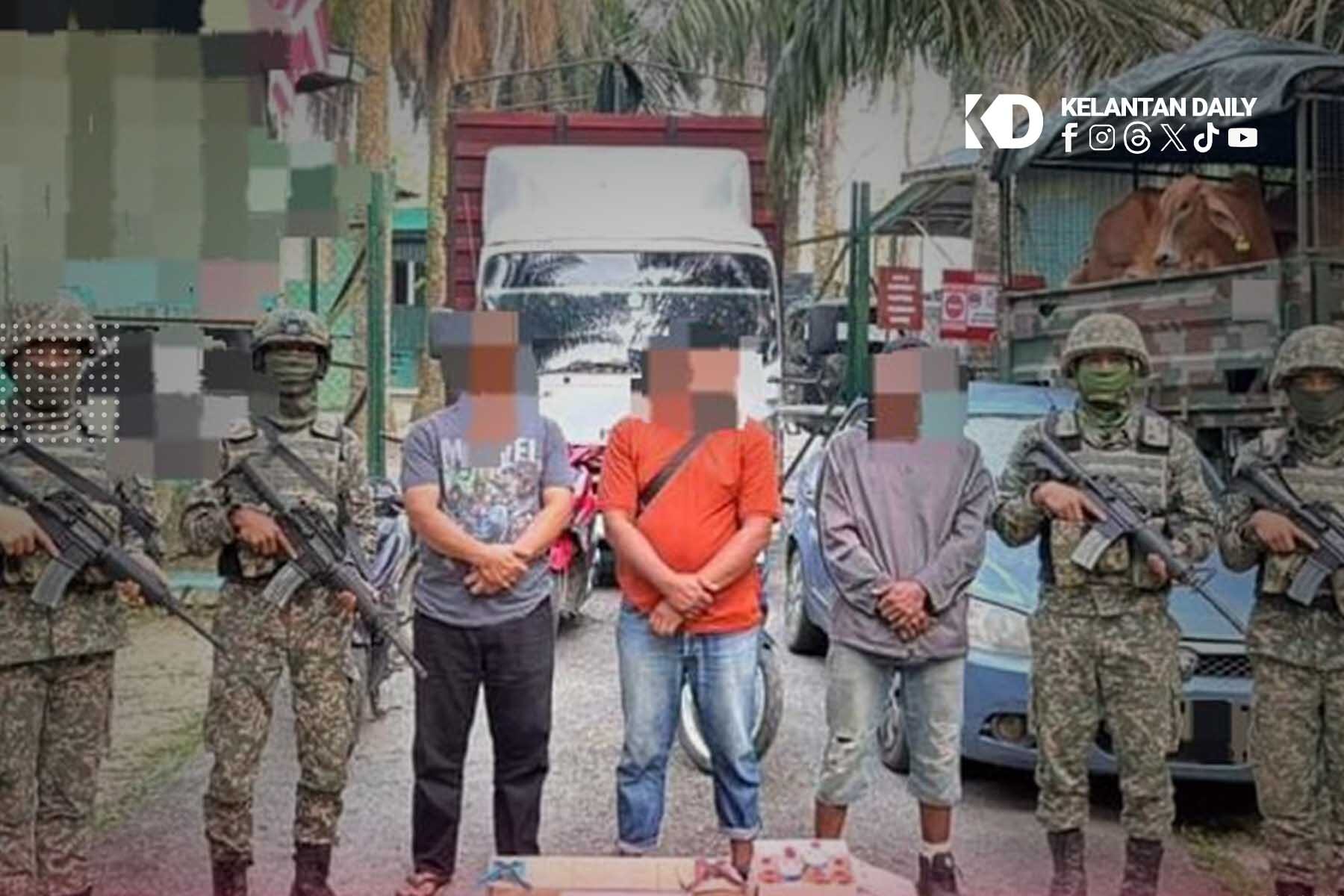 “Anggota tentera bertindak mengepung kawasan tersebut sebelum menahan tiga lelaki berusia antara 36 hingga 43 tahun, manakala selebihnya sempat melarikan diri dengan menyeberangi Sungai Golok ke sempadan Thailand.